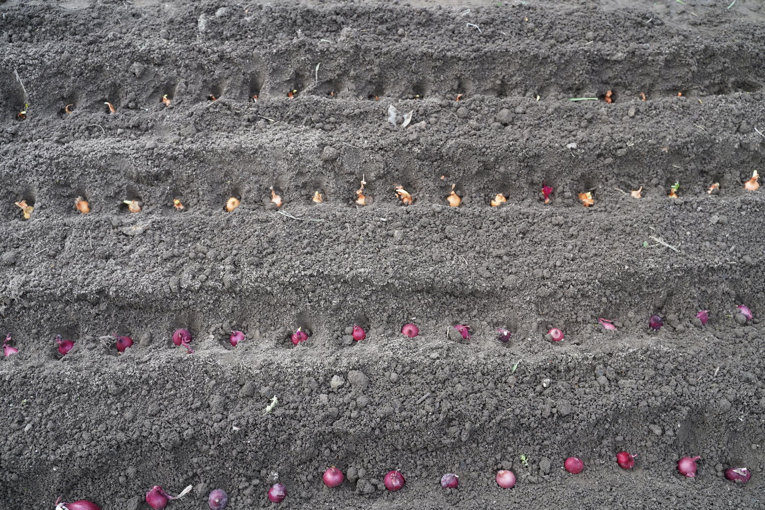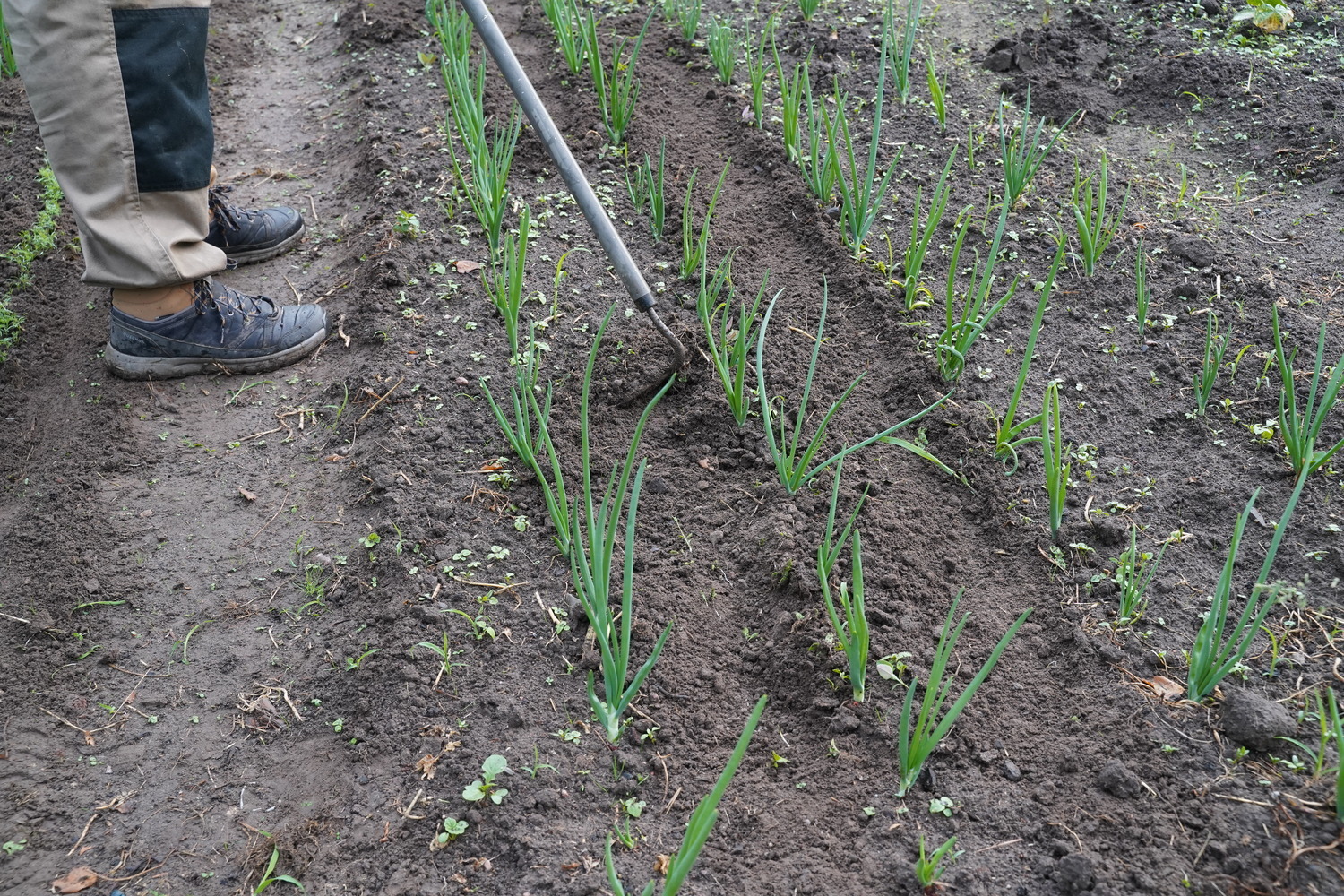 Sowing can continue for a few more months as long as the soil remains sufficiently moist. Onions from later sowings tend to germinate faster, sometimes within a week, especially when the soil warms up and there is enough moisture.