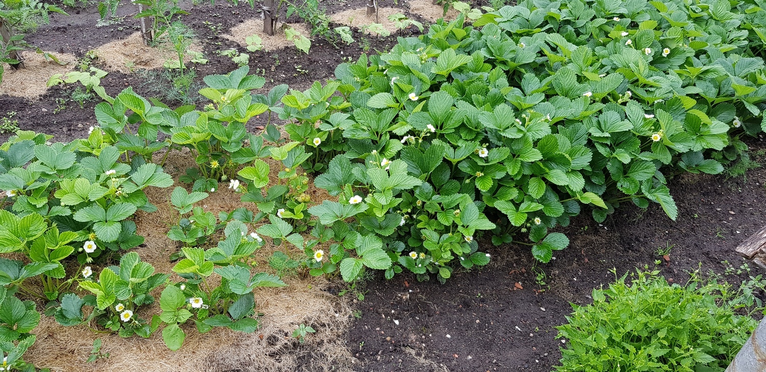 It is recommended to mulch the newly planted strawberries immediately with wood chips, which will help prevent weeds and retain moisture for a longer time. Neutral peat can also be used as mulch.