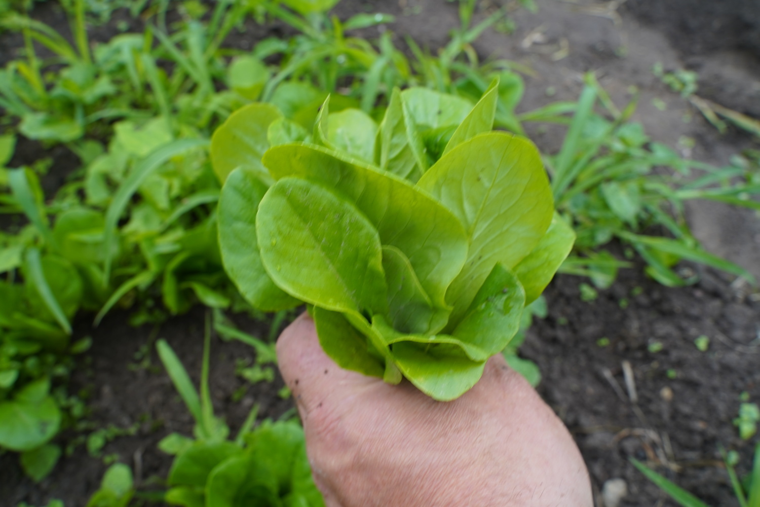 Lettuce is pulled from the ground by grasping it from the base. During harvesting, the lettuce should be dry; otherwise, it is more likely to spoil quickly.