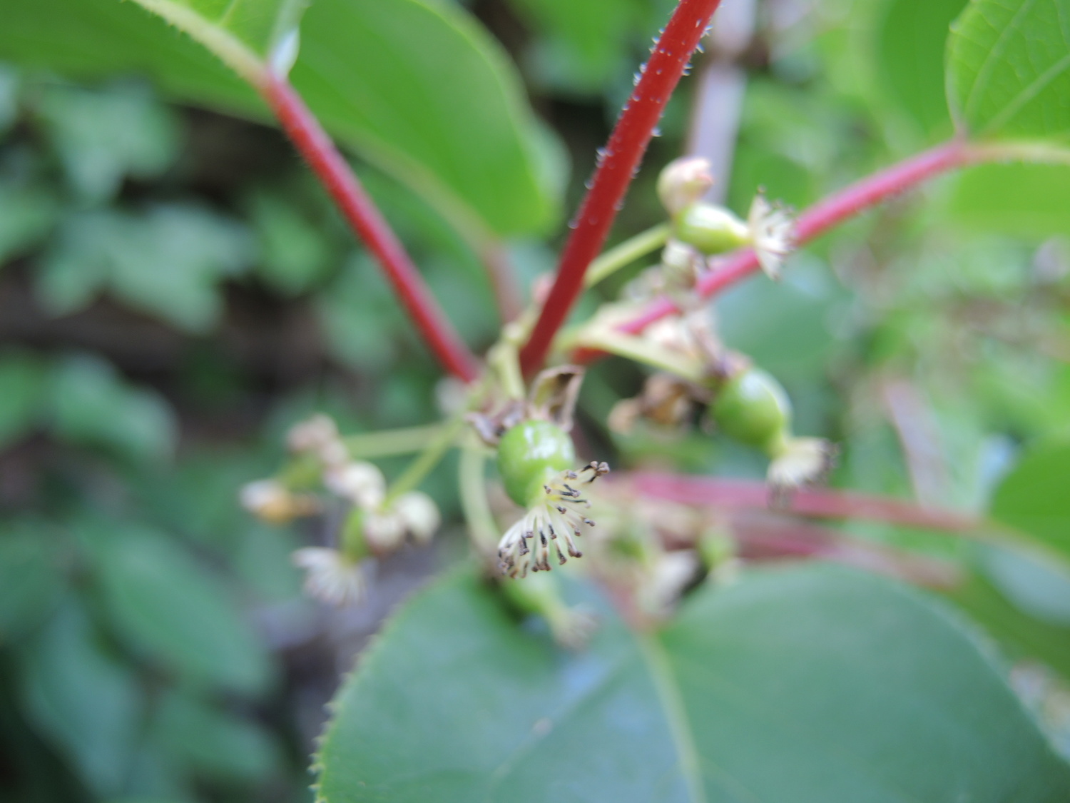 The ornamental fruit shrub and climbing plant Actinidia can easily be called the kiwi of the northern latitudes. These wide-spreading, tall vines decorate house walls and produce fruit—small green sweet-and-sour berries that taste very similar to kiwis, though their skin is smooth and hairless. Some actinidia varieties are known for their surprisingly high vitamin C content.