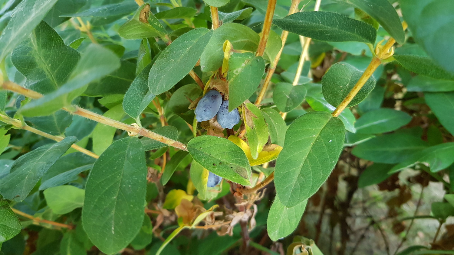 The edible honeyberry (Lonicera caerulea), often referred to as the blue honeyberry, is a species of the genus Lonicera. The plant's natural distribution area is in the temperate climate zone of the Northern Hemisphere, where it grows in riparian meadows, forests, mountain tundras, and shrubs, as well as in the subalpine zone and forest belt.