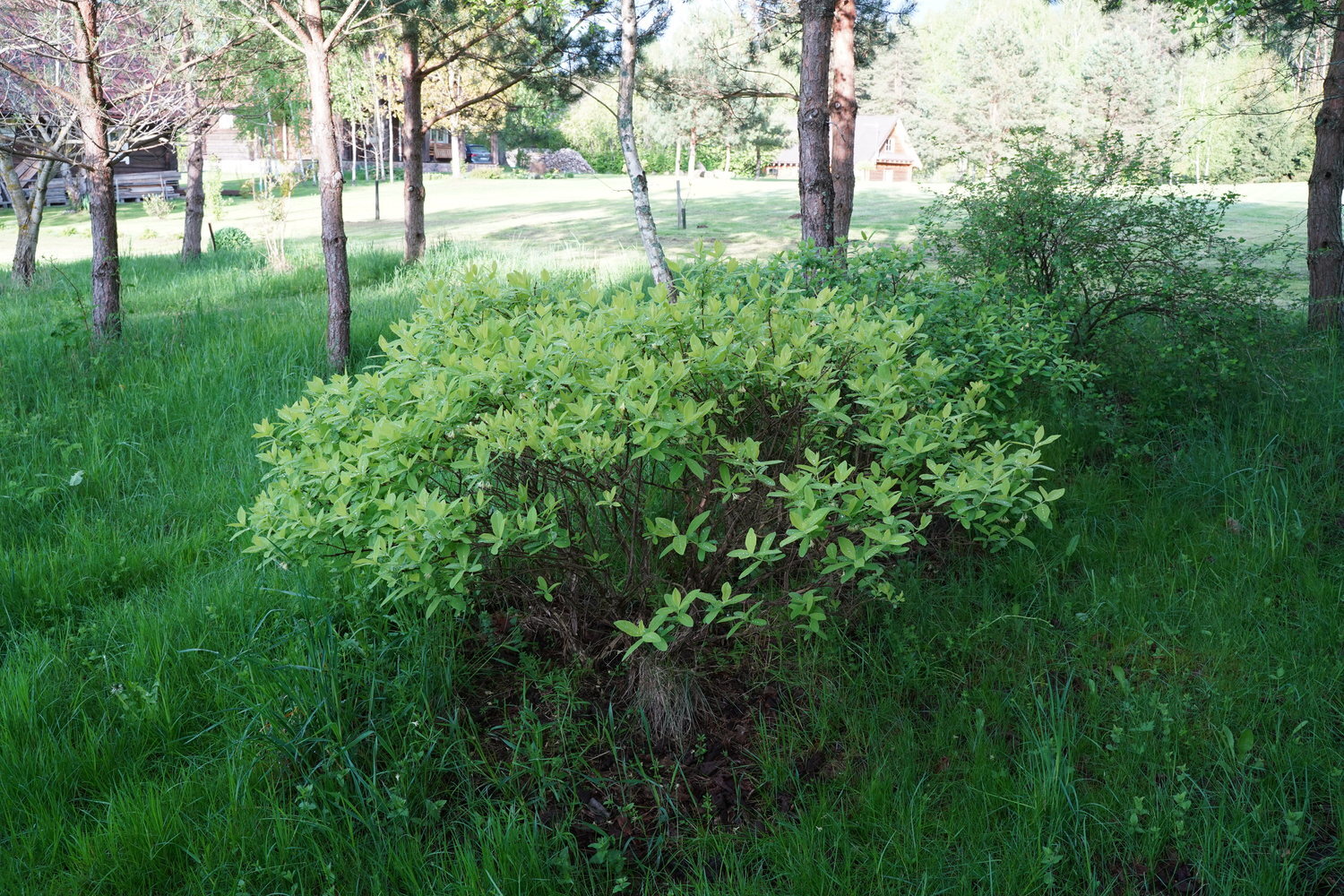 An 8-year-old honeyberry bush. The crown is formed, and each year, branches growing inward, as well as dried and weak branches, are removed.