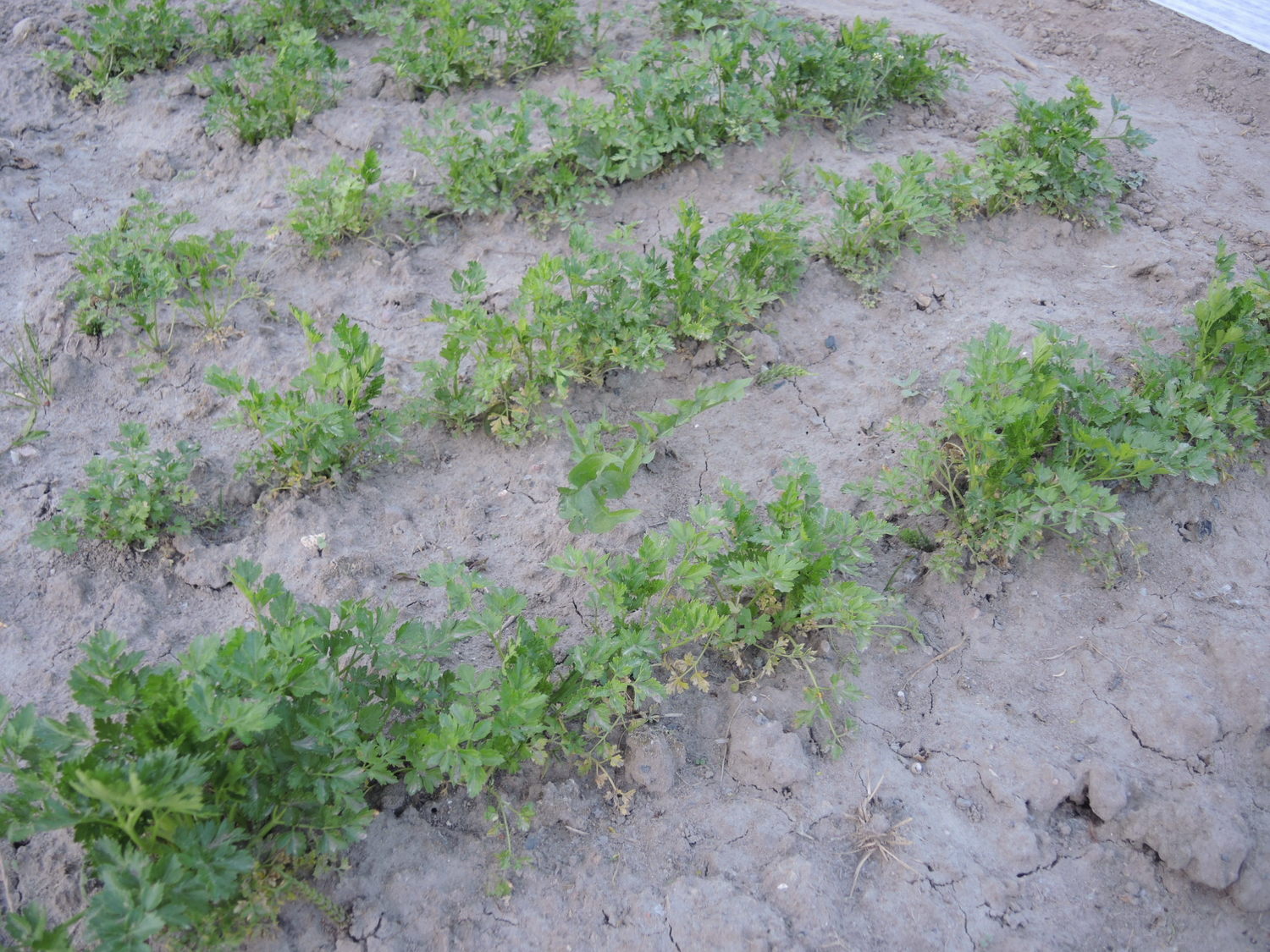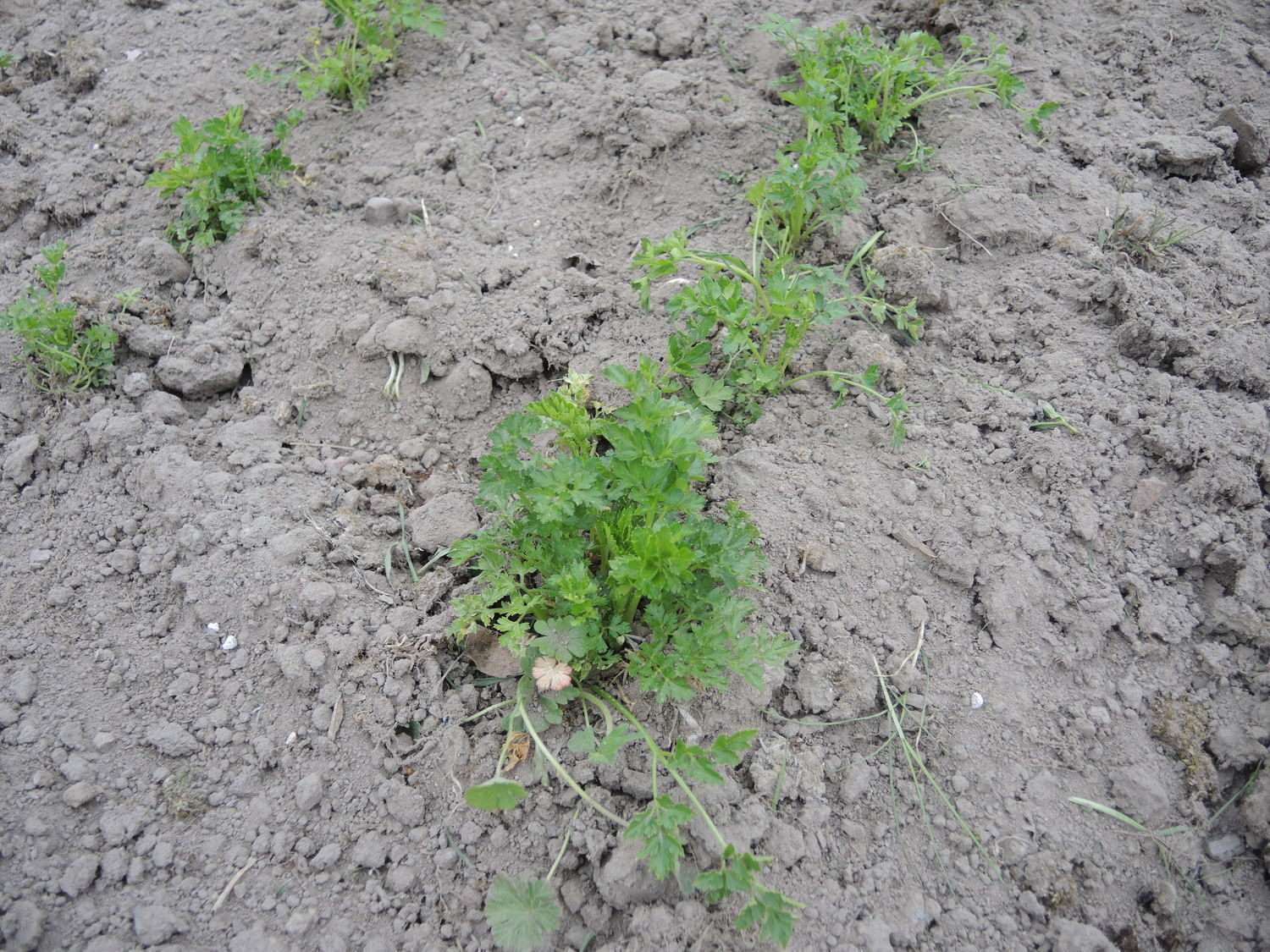 Parsley can be transplanted as seedlings, which results in a much earlier harvest. Another advantage of transplanting seedlings is avoiding competition with weeds during the germination phase. Parsley that grows from seeds in the field is often overtaken by faster-growing weeds. Weeding parsley is quite difficult.
