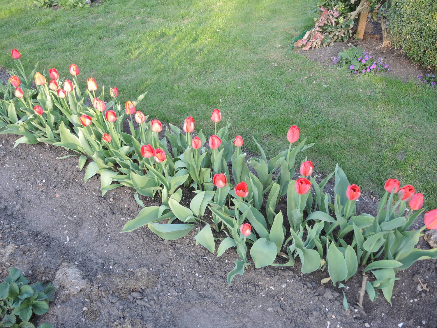 Choose a sunny and wind-protected location. There is no need to worry about the shade from trees, as tulips will bloom before the trees leaf out.