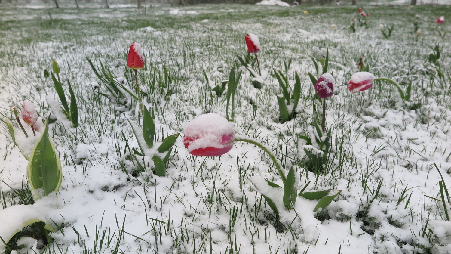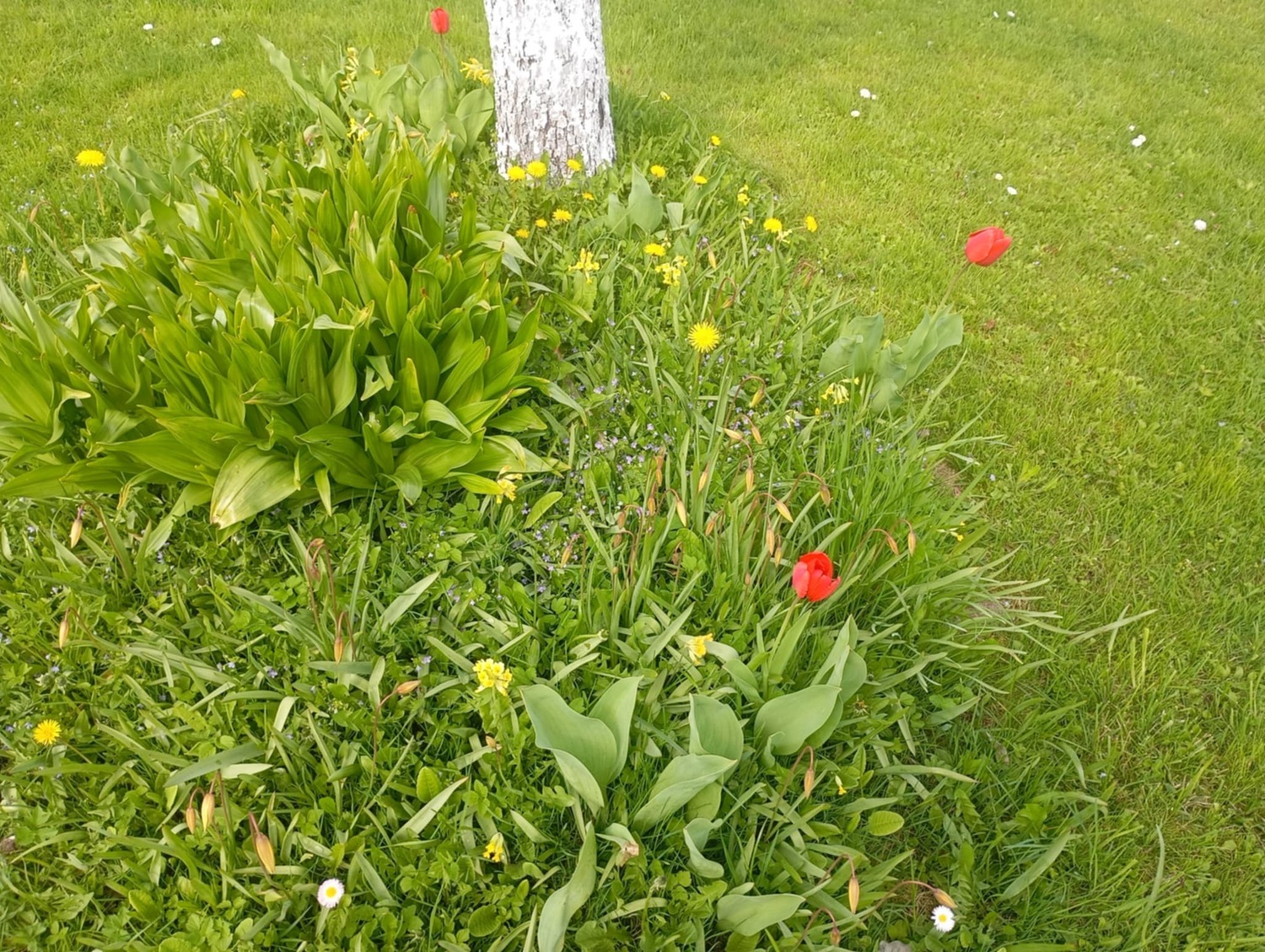 Tulips love moisture. If the spring is dry, it is essential to water them with warm water, but be careful not to get the water on the leaves.