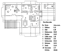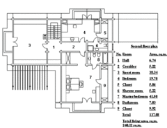 Compact, regular shaped 121 sq.m. three-room weekend house for four persons. Perfect for a small site in the countryside or in garden-plot communities.