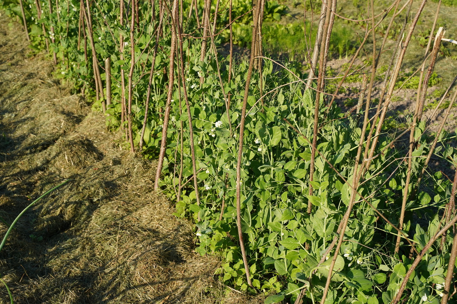 The spacing between pea rows should be 15-20 cm, and between peas in the rows should be 5-6 cm. Furrows are made into which the peas are sown. After leveling the soil, peas should be planted at a 3-6 cm depth. In heavier soils, they should be planted less deeply. The spacing also depends on the height of the pea variety – taller varieties should be planted further apart. Peas are often disturbed by birds, so it is a good idea to cover the crops.